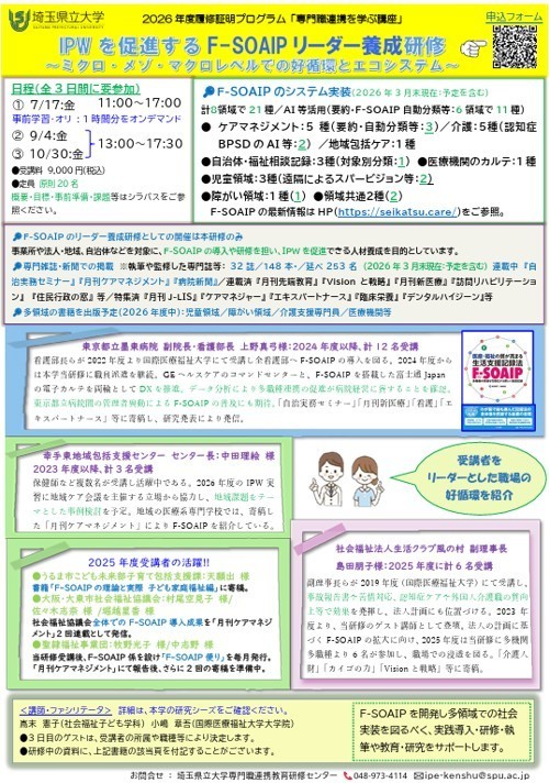 =専門職連携(実践)・多職種連携(実践))における経過記録法、および情報共有ツールとして、F-SOAIPを紹介。72-75頁。
